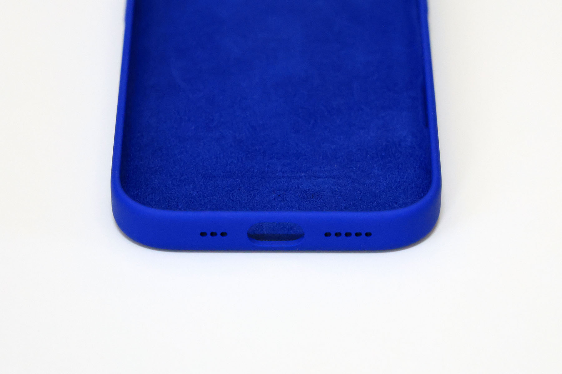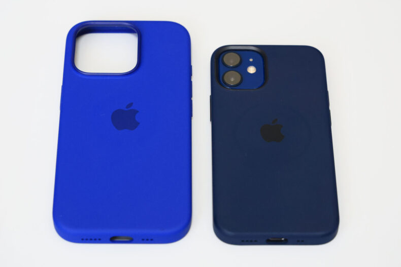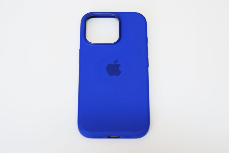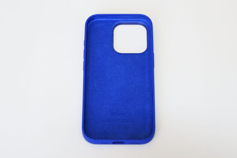 青のシリコンケースということで、手元の会社用 iPhone 13 のシリコンケースと似た色だったらどうしようと一抹の不安がありましたが、全く違う青でした。