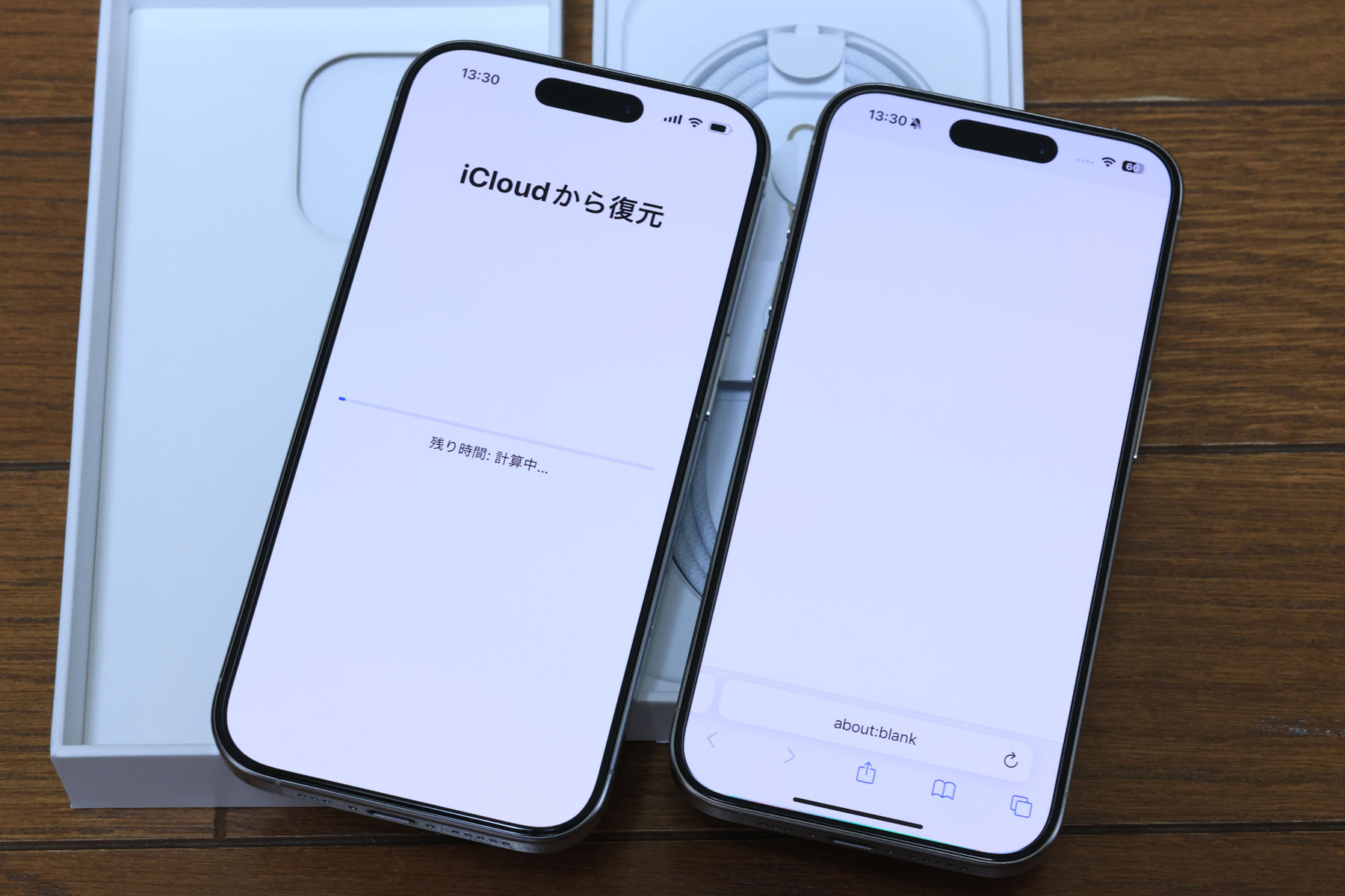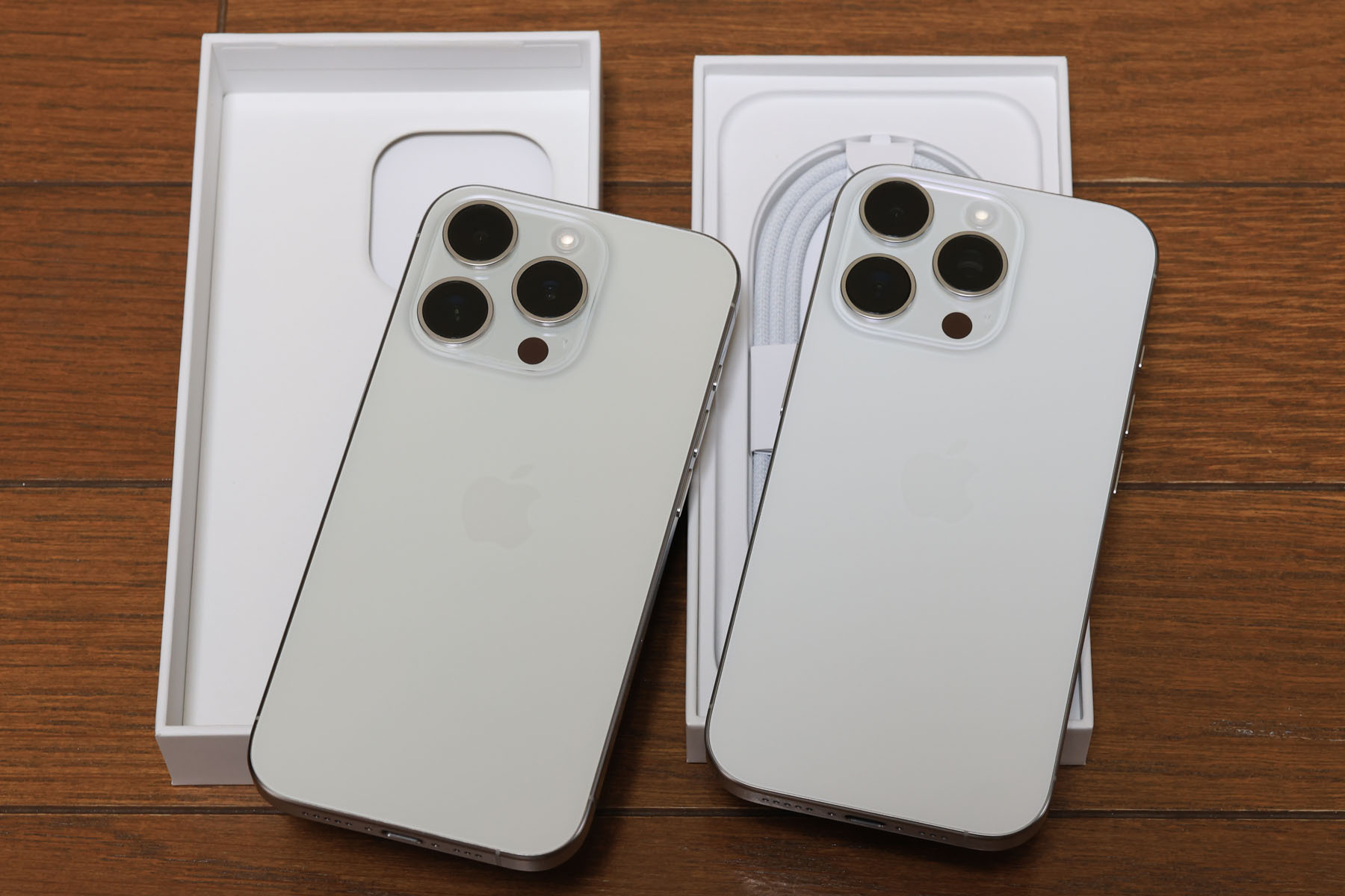 iPhone 15 Pro(左)との比較。区別つきません。うっかり16 Proを下取りに出さないようにしないと…
