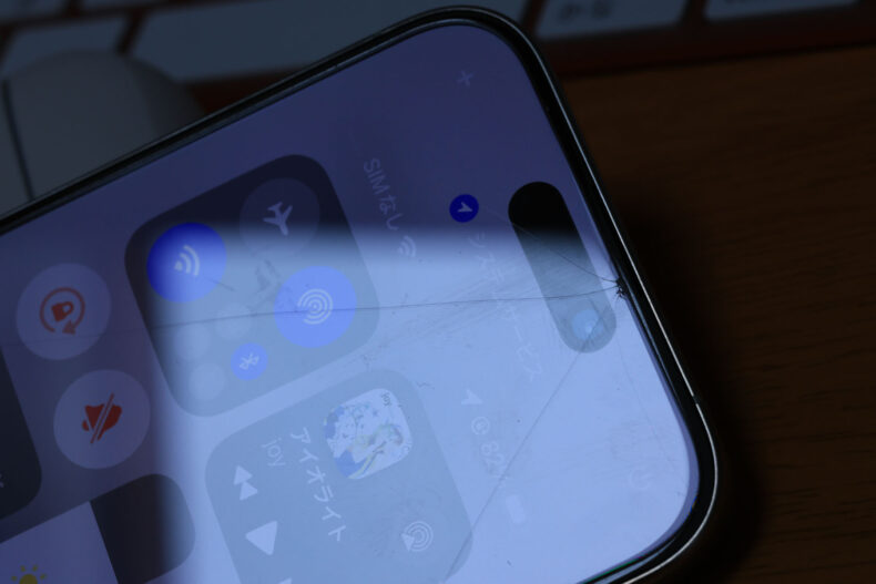 そんなことしているうちにiPhone 16 Pro を iPhone 15 Proの方に落としてしまい、当たりどころが悪く保護ガラスが割れてしまいました。保護ガラスだけで済んでよかったですが、保護ガラスだから割れたという可能性も…。