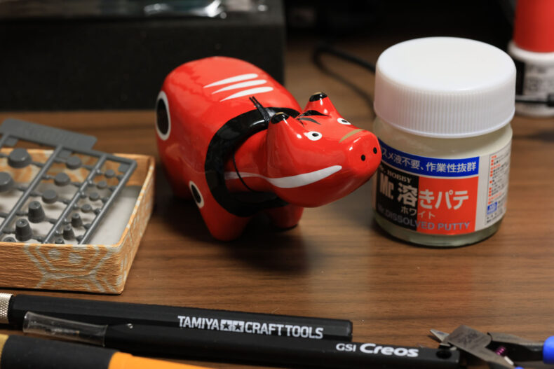 通販での再販を待っていたものの、再販されることはなく野沢民芸店舗限定商品となってしまった「ヘッドホンべこ」。会津若松まで行くのもしんどいし行ったところで必ず売ってるとも限らないし、メルカリでは定価の4倍で転売されてるし、そんな状況なら、と思って自作することにしました。RGガンダム2.0の続きでも作ればいいのに。
