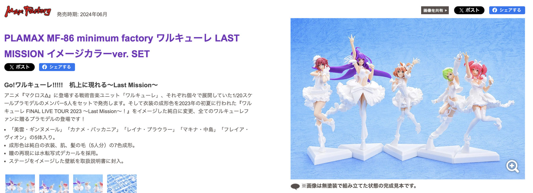 個別売りされていたワルキューレの5人のプラモの、衣装を白成型にして、「ラストミッション」のイメージカラーver.にしました…という商品なのですが、ちょっと安直すぎやしませんかね…とは思ってはいたのですが。