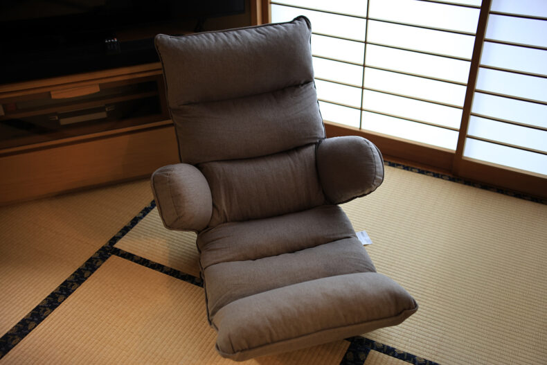 座椅子が壊れてしばらく経つのですが、その間、せっかくの 65inchテレビを遠くのソファから(私)、バランスボールの上で(妻)、体育座りで(娘)観ていました。バランスボールとか体育座りはともかく、遠くのソファから観てるとちっとも大画面という感じがしないので、「新しい座椅子を買おうよ」と私が妻に話していました。が、妻は座椅子のないスッキリ感も捨てがたいらしく、「いや、いらん」と突っぱねられていたのですが、このたび娘が「背もたれが欲しい…」と懇願したことで、座椅子を買うことになりました。