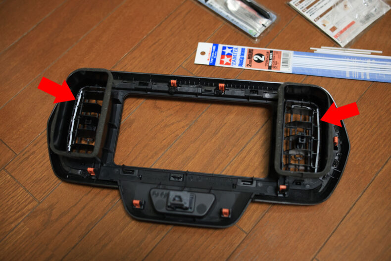 原因はエアコンルーバーでした。横方向の桟が左右にカタカタ触れていたのが原因で、しかしこの部材は上下にスイングすることから、左右のガタを抑えつつ、可動は確保しなければという難題がありました。