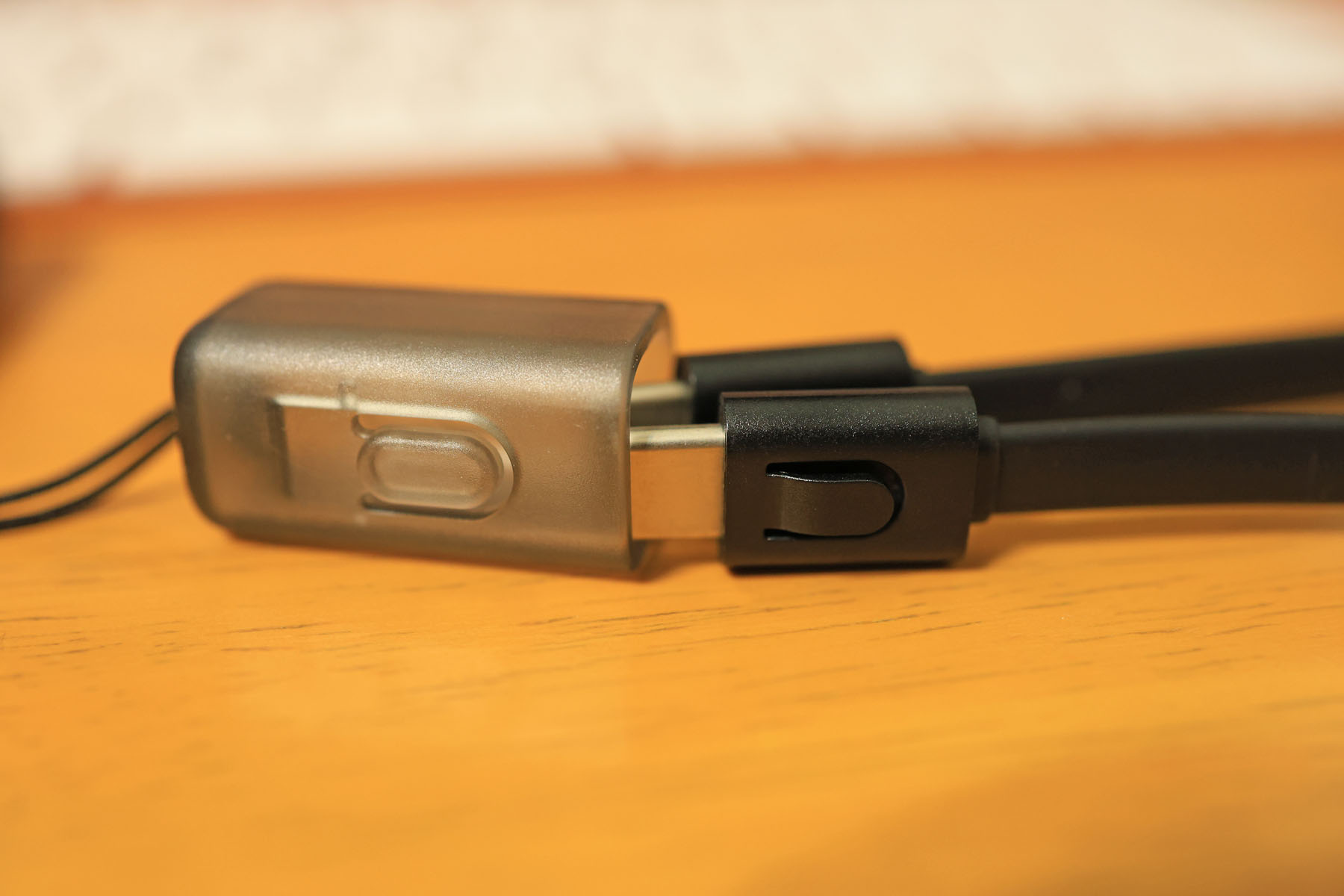 さてその Anker Power Bank (10000mAh, 22.5W) ですが、電気回路エンジニアが卒倒しそうな「USB-Cケーブルがストラップになっている」モバ充です。その機構に興味があって、自分で使うのは嫌だけど一度見てみたいし娘に渡すならいいやと思い購入。