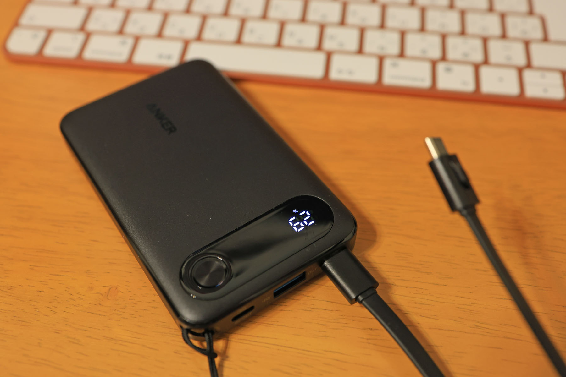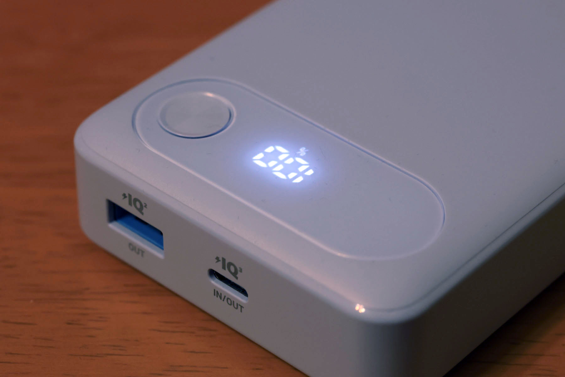 残量の数字表示もついていて、これは PowerCore Slim 系とは全然違う製品ですね。Anker は以前から複数の設計チームが似て非なる製品を作っている印象がありましたが、今回も然り。