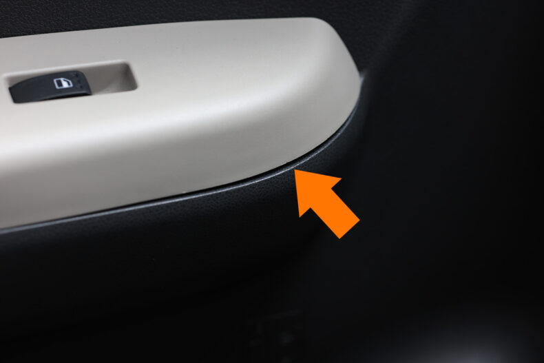 パッソ(M700A)なんですけど、ドアトリムの隙間にズボンの縫い目が引っかかって、いずれズボン破けちゃうんじゃないの?と思うようになってきたので、隙間を埋めました。