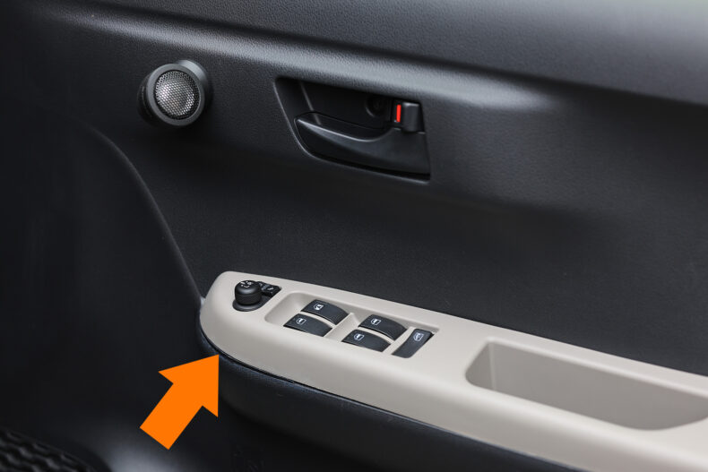 助手席側にも同じような隙間があるんですが、助手席に座る姿勢は運転姿勢とは違いますし、隙間もこちらの方が少ないので、ズボンに引っかかることはありません。
