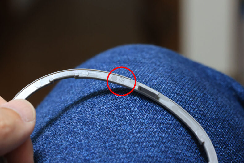古いパッドの外し方ですが、爪が6本で止まっており、赤部分は内側に押すと外れ、緑部分は外側に引っ張ると外れます。まず赤2箇所を外してから、緑4箇所を外すと外しやすかったです。パットではなく、後述するフレームを意識してつまむと良いと思います。なお Geekria のキットについてきた交換用リムーバー(道具)は特に使わず、素手で外せました。