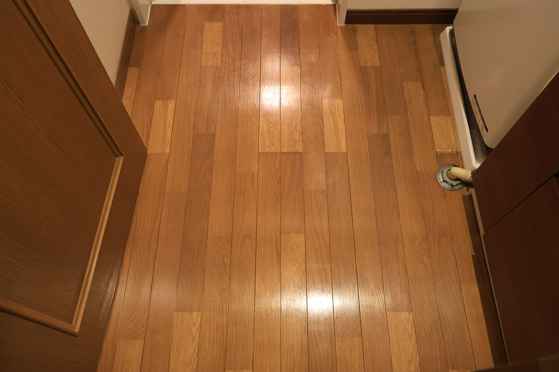 2年前に塗った脱衣場の床のニスがところどころ剥がれてきたような感じがしたので、塗り直しました。
