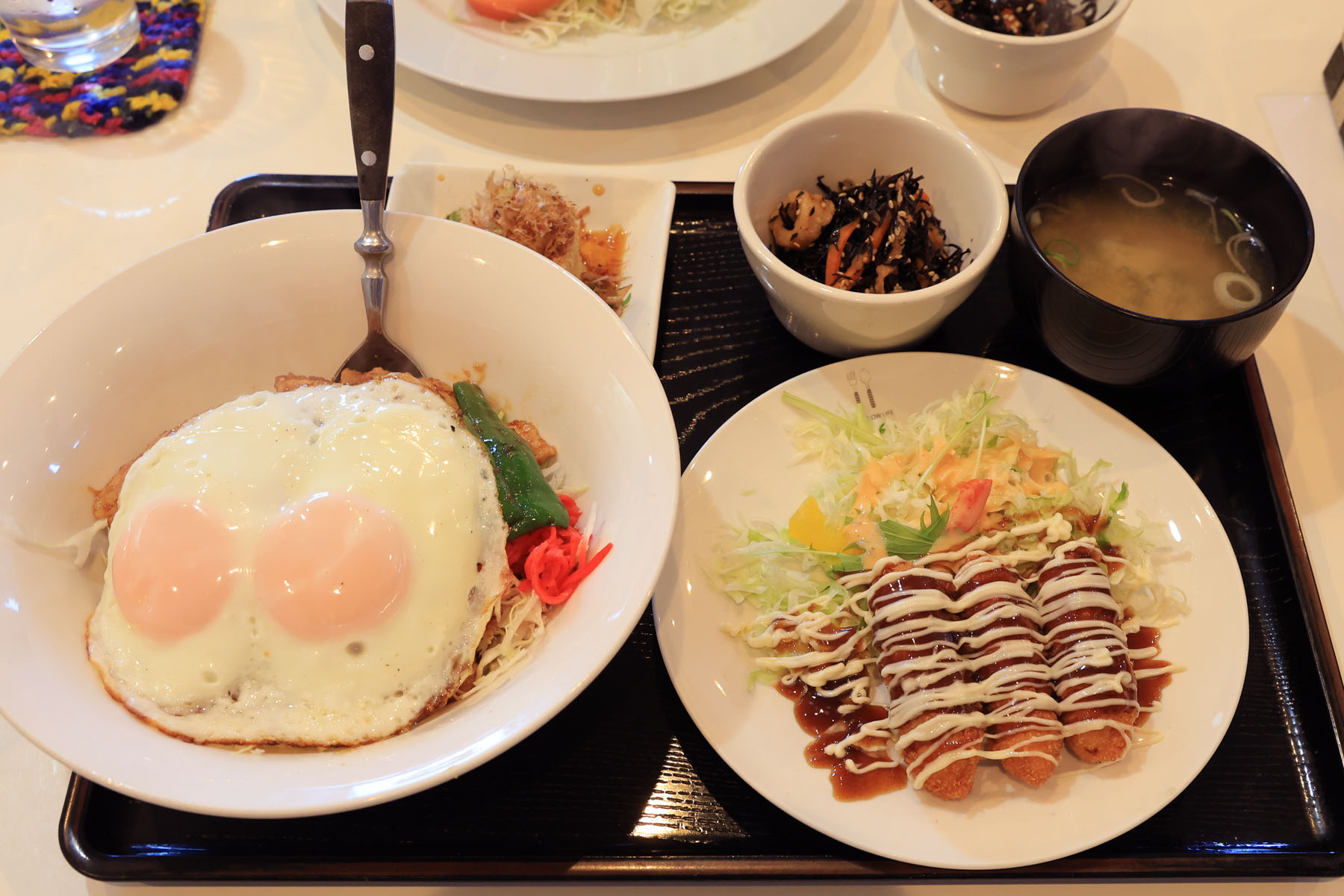 そしてしょうが焼目玉丼。目玉焼きには何もかかっていませんが、下敷きになっている豚バラ肉がしっかり味で塩気は十分。分かりやすい美味しさはまるで「親戚のおうちごはん」を食べている気分になります。