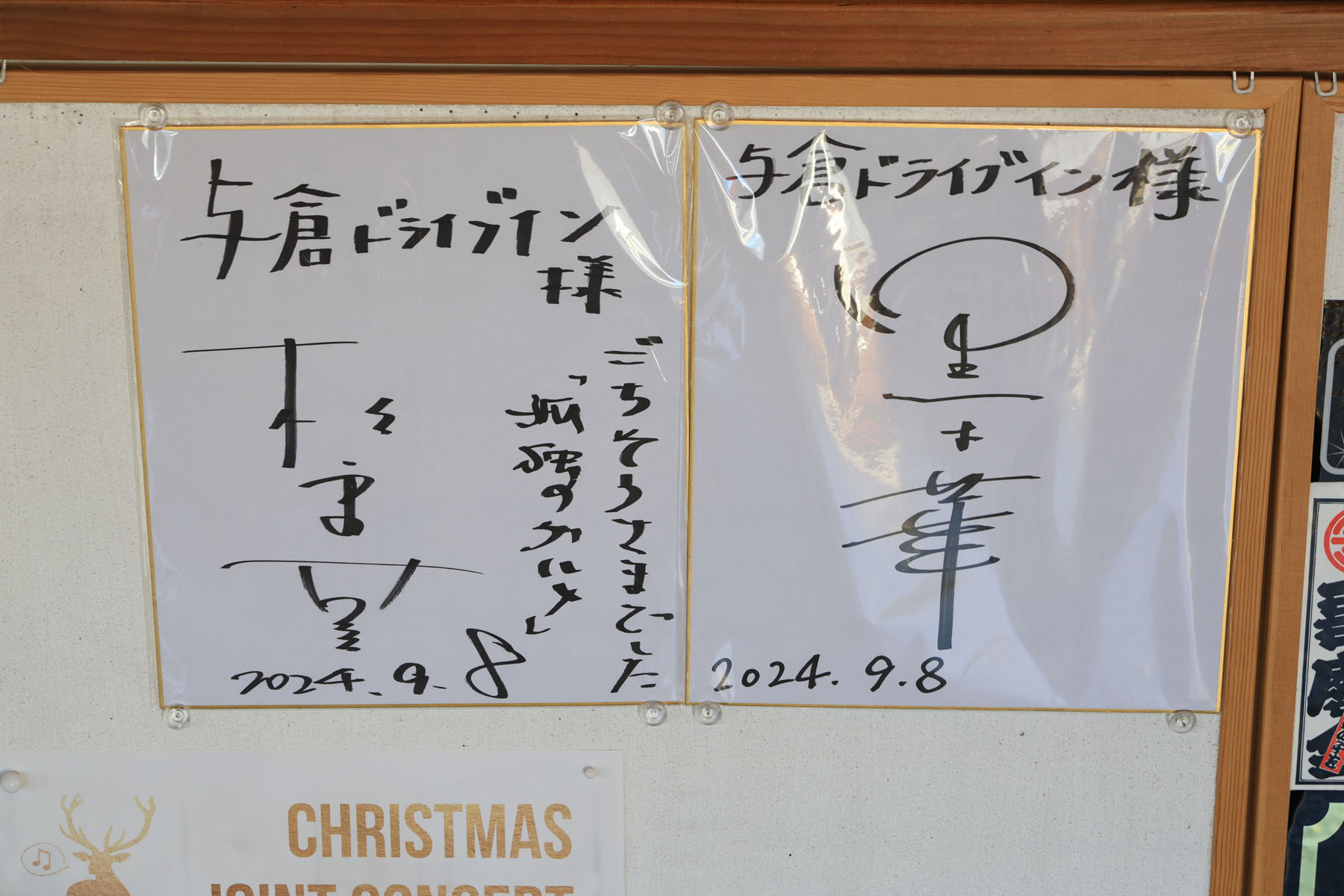 さて開店10分前くらいから行列が形成され始め、そのトップだったので余裕でゴロー席を(Bさんが)ゲットして色々悩みながらも料理を注文、落ち着いて周囲を見渡すと店の入り口正面にサインが。