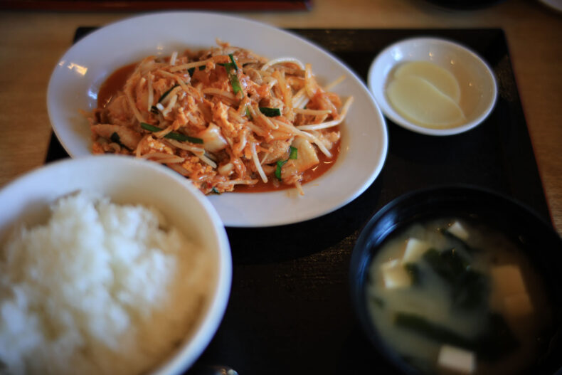 これもガツンと来ることなく、優しい系の味。卵が入っているからなのか、キムチが甘い系のものをつかっているのか、さほど辛さが前面に出ていません。卵を入れなくても成立する料理だと思いますが、あえて卵を入れることで栄養的により完全に近くなっているように思います。長距離ドライバーにバランスの良い栄養をつけてもらいたいというお店の気持ちを感じました。