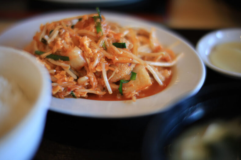 そしてメイン。豚肉キムチ卵炒め定食です。