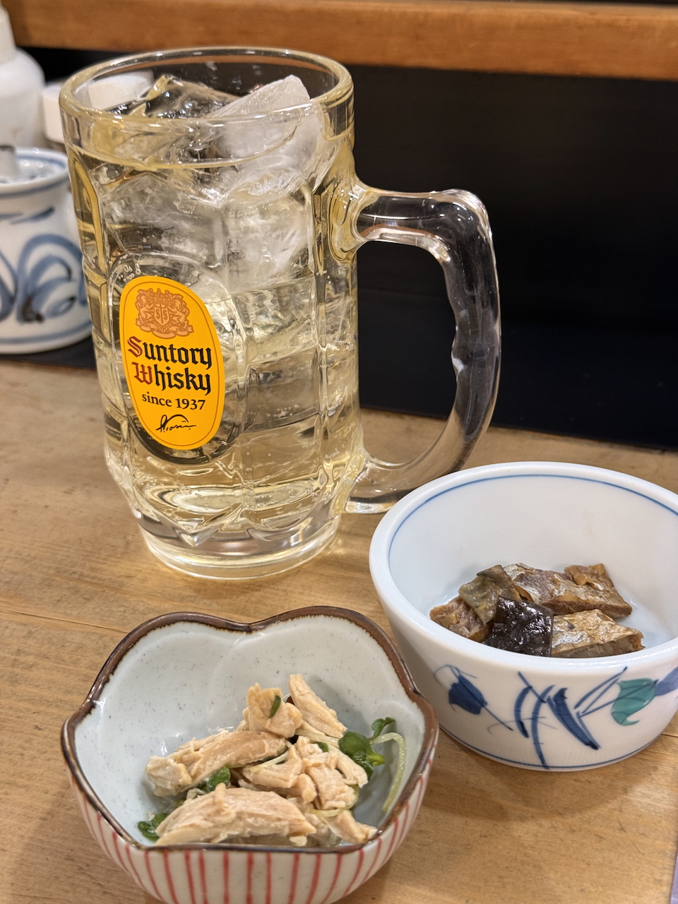 普通「とりあえずビール」となるところですが、この日は角ハイボールから。先日会社の旅行で「メーカーズマーク」のハイボールを飲んだらちょっと口に合わなかったので、日本のウイスキーが飲みたくなっていたのです。低プリン体で痛風にも優しい。これがこの日の勝利を決めました。