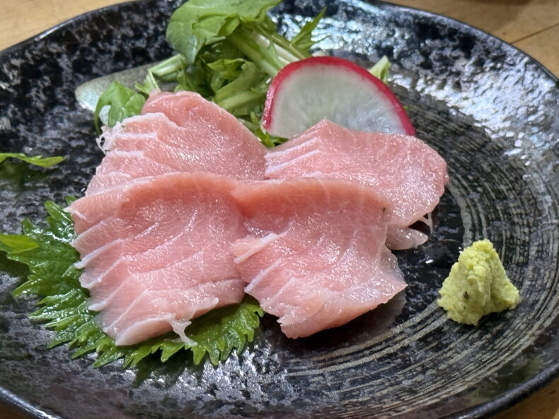 マグロの大トロ頭肉。通常は「ネギトロ」などになる場合が多いかと思いますが、珍しく切り身で供されました。うんもう、口の中でとろけますね。いきなり旨さのアクセル全開。