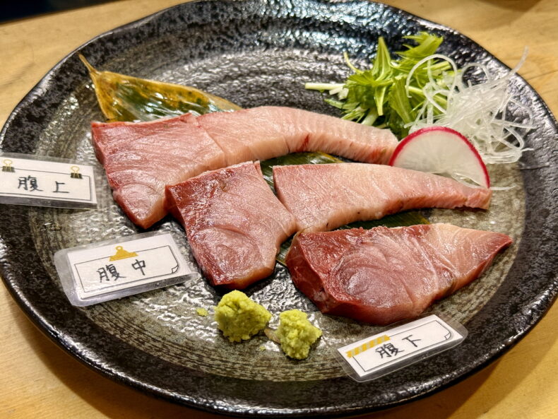 続いて天然寒ぶりの三種食べ比べ。富山産は流石に高くて仕入れられなかったとのことで、これは福井産。いやでもこのクオリティはお店じゃないと食べられないです。