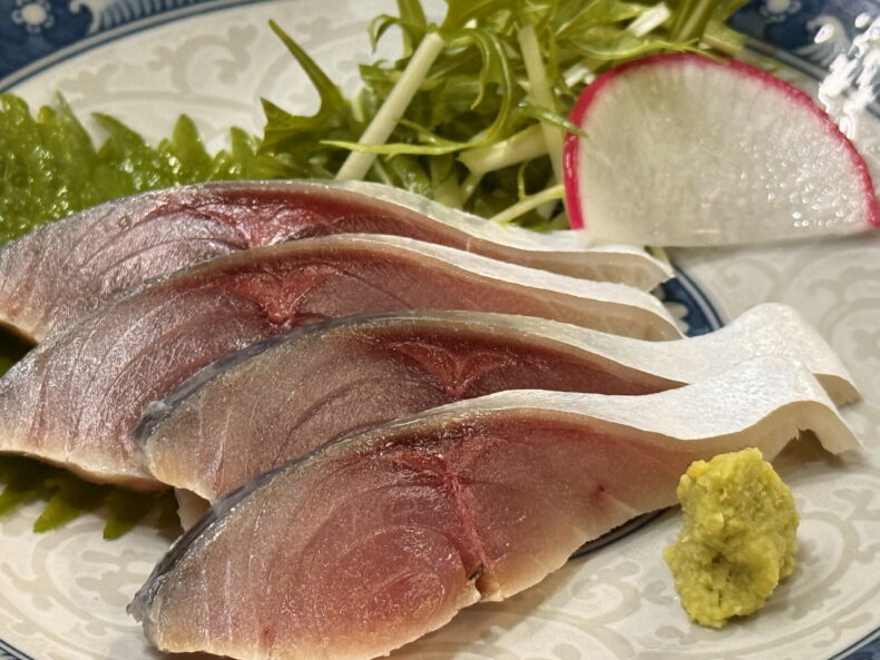 何やら他のお客さんに鯖をお勧めする店主の声が聞こえてきたので、調子に乗ってこちらもしめ鯖を注文。全く臭みのない、新鮮な鯖でした。