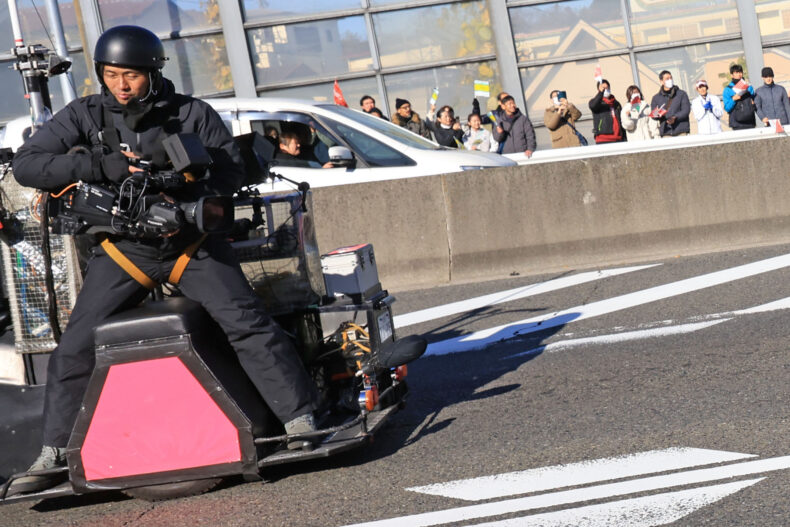 にしてもこの姿勢で5時間以上、並走するんですよね。中継チームも体力勝負だなぁ。