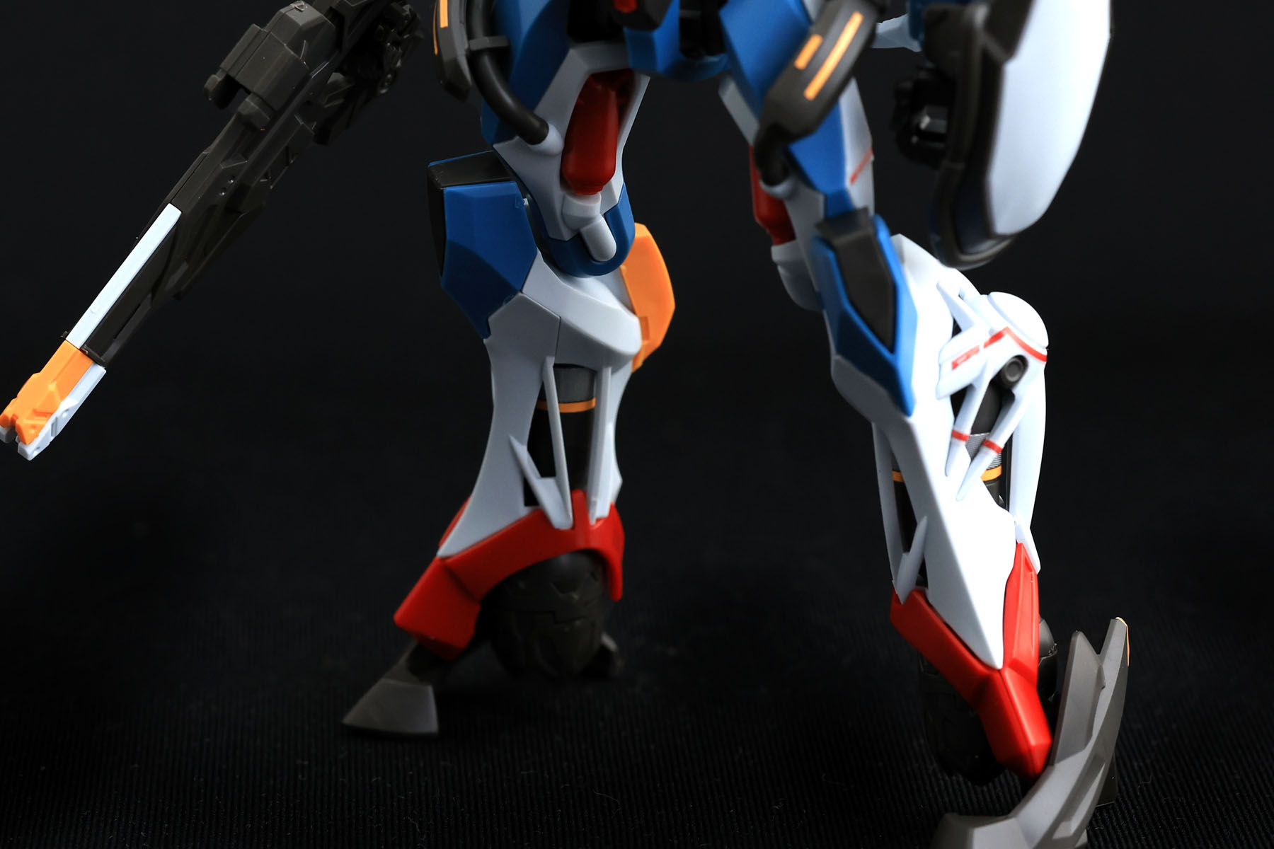 また、モビルスーツの足の裏にはバーニアノズルが設けられているのが一般的でしたが、冷静に考えればバーニアノズルが直接接地してしまうのも乱暴な話。このジークアクスではバーニア自体は着地させず、足首から下はバーニアを囲むフレームのような新機軸のデザインになっています。