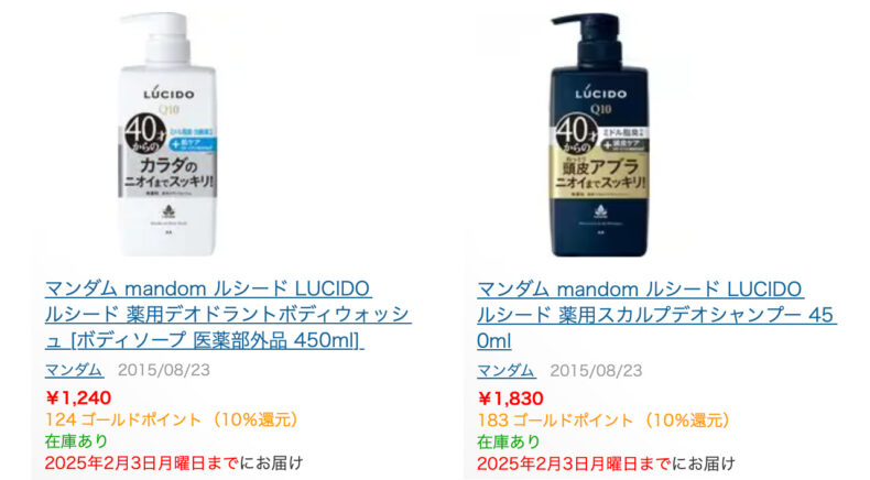 昨年7月に入院して以来、Doveのボディウオッシュを使っていたんですが、匂いが飽きてきたことと、洗剤の残留成分が多くて浴室の黒い部分が真っ白になりやすいという問題がありまして、少し前から再びルシードに戻りました。ですがルシード、気がついたら ヨドバシ.com ですごいお値段に。