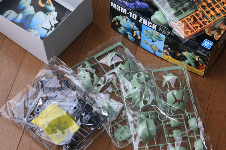 2017年ごろには店頭の不良在庫とも言われていたゾック、ネットの声を聞くと「ラストワンピース」的な扱われ方をしばしばされています。すなわち、「これを買ったら概ね収集は満足」ということです。私も予約済み未到着のジオン水泳部「HGUC ゴック」「HGUC アッガイ」は控えてはいるものの、確かにこのゾックはラストワンピース的な扱いでした。