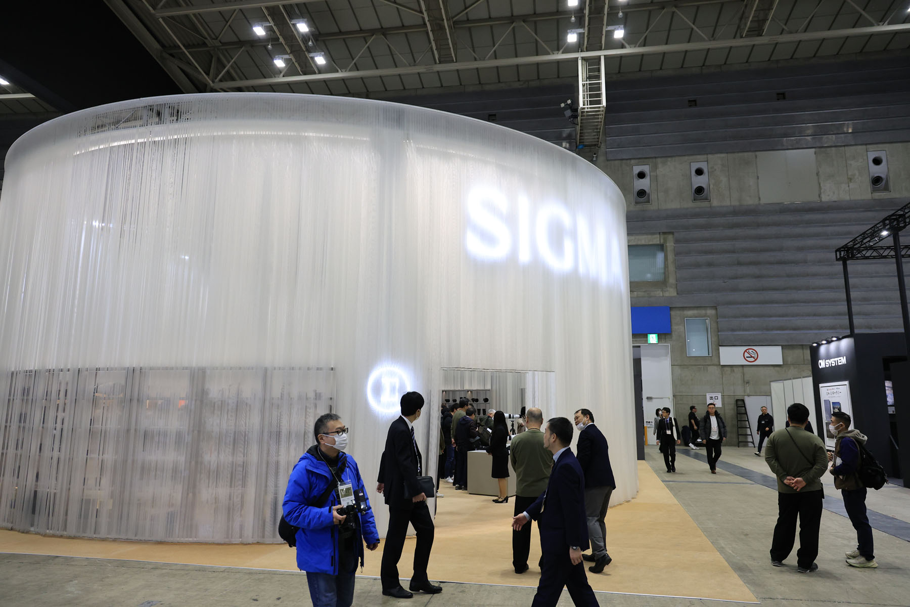CP+の行列を一社でかっさらったSIGMAブースから行きます。いや、他社さんも行列はできるところ、整理券とか配ってうまく行列ができないようにやっていたんですが、SIGMAは特にそういった対策はせず…