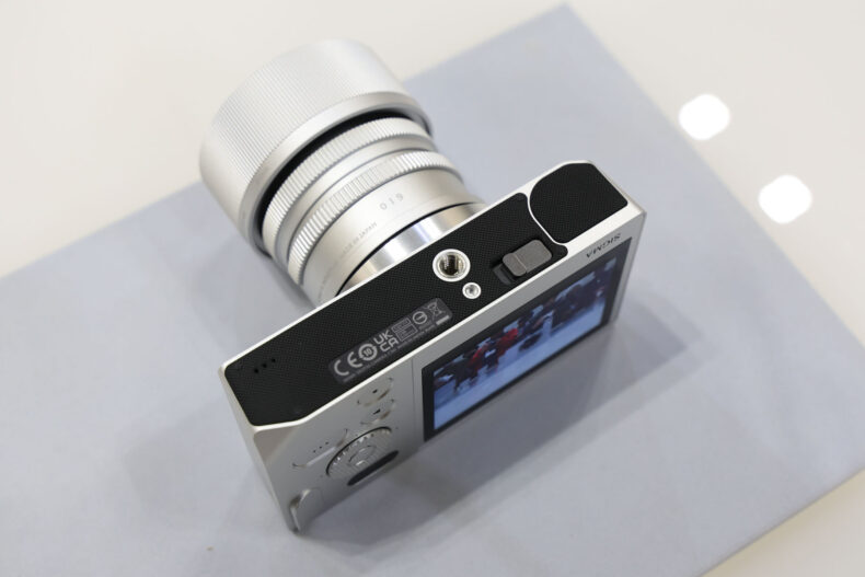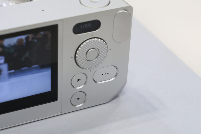 つるんとしてて、持ちにくそうだと思うじゃないですか。いや実際持ちにくいんですけど、その持ちにくさゆえ、落としにくそうという不思議なカメラです。筐体のエッジが立っていて、それが手に食い込むのでむっちゃ手に引っかかって落ちにくいんです。MacBookをカメラにした感じ、です。