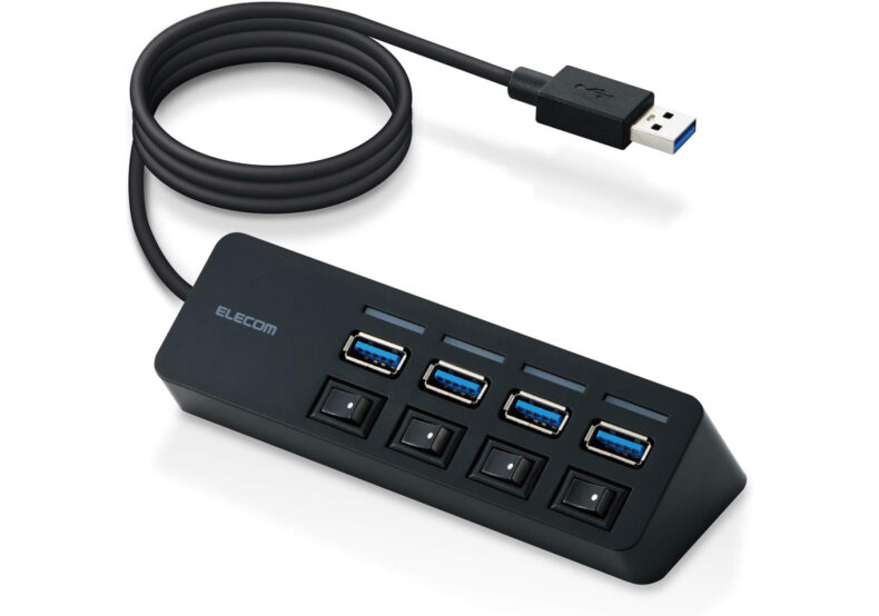 使い方にコツがあって、それは 切り替えを DIGA の電源が切れてから行うこと。DIGA の USB電源は本体の電源をオフにしてもしばらくは通電しているので、本当に USB ラインの電源が途絶えてから切り替える必要があります。その点、このハブは各ポートに LED が付いており、通電状態が一目で分かります。LED が消えていることを確認してから切り替えればいいわけです。