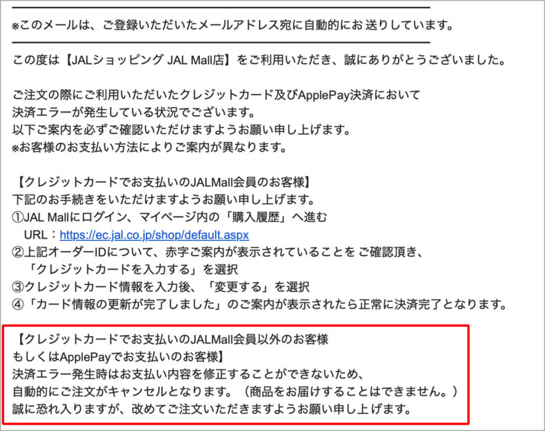 これは以下のような JAL Mall からのメール通知で知ったのですが、