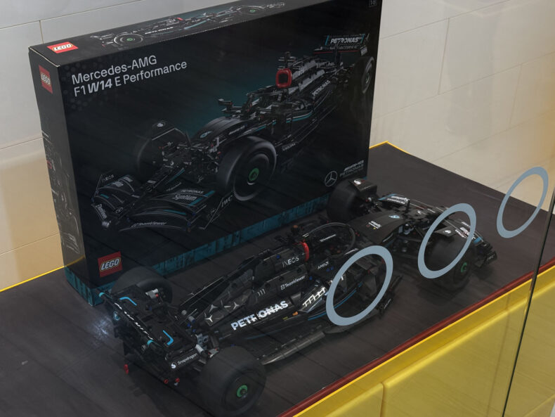 レゴストア。特にアウトレット品とかはないです。この3万円くらいするレーシングカーのモデルは完成品の実物を初めて見ました。全長50cmくらいになるんですねこれ。ガンプラで言えばPG。