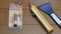 以前は瞬間接着剤はタミヤの使い切りタイプを使っていたんですが、商流がなぜか不安定な上、最近ダイソーの4本100円のでも充分なクオリティだと感じたので、それを使っています。価格はタミヤの1/3以下です。