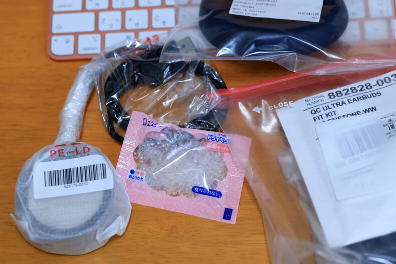 「効き目サインのビーズが青色からピンク色に変わったらお取り替え」なのが分かりやすくて良いのですが、こういった小容量の密閉袋で使用する場合、こっちに入れたドライペットよりもなぜか未使用の方のドライペットが先に寿命が来てしまうという現象が発生しつつあります。こっちの袋よりもドライペットのパッケージの方が密閉性が低いってこと…?
