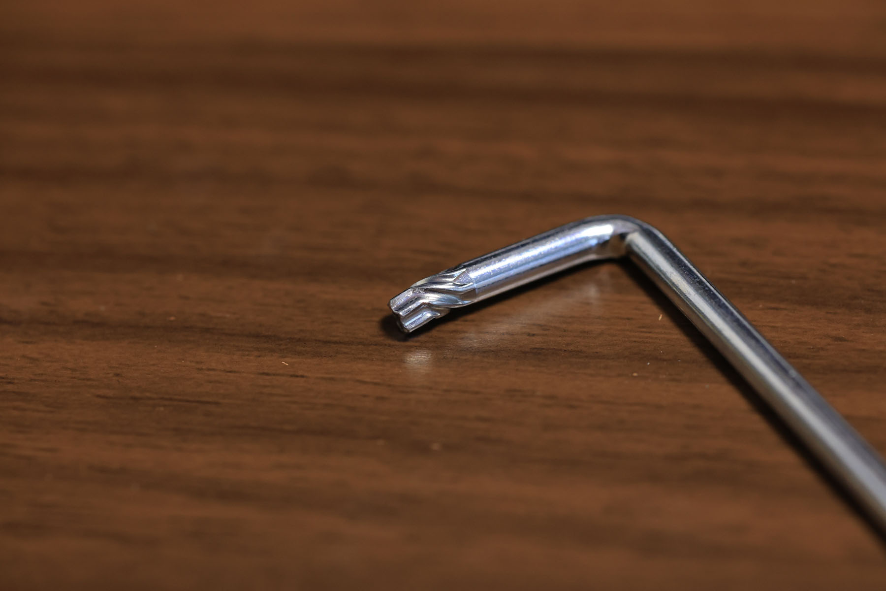 雲台を外すのには雲台をねじるのではなく、脚の間にある固定ネジを付属の星型レンチで緩めるのですが、そのネジがとても固くて、ネジを舐めないかと心配しながら力を加えたところ、レンチの方が曲がってしまいました。えー。ネジを舐めないでこっちが曲がるのって初めて体験しました。GITZO のネジ丈夫すぎ。それで俺も山のフドウすぎ。
