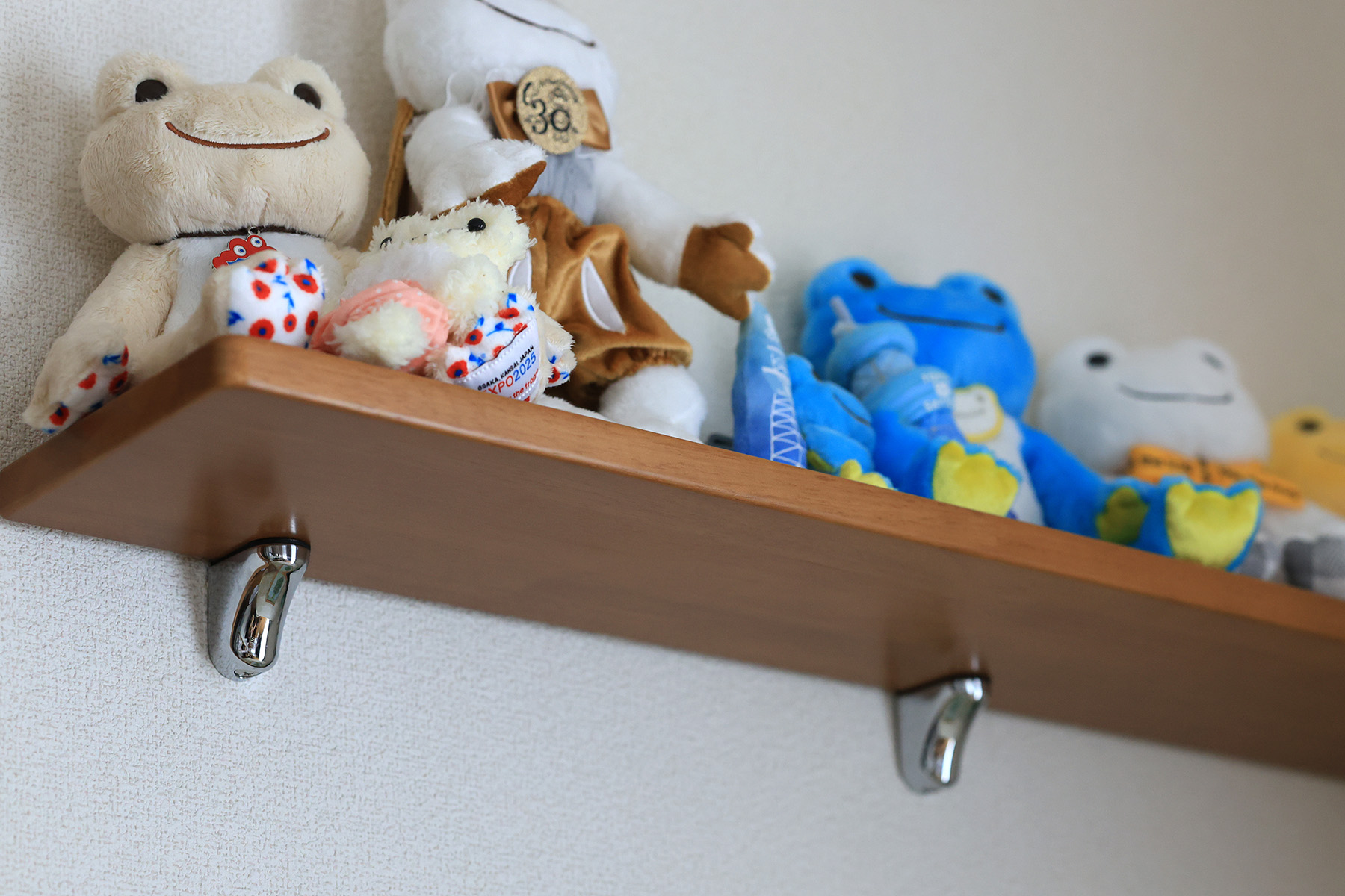 戸建て作り付け棚に近いクオリティで満足です。結構な穴を開けてもう回復不可能だと思うので、ちゃんとした棚にしておいて良かったです。金具はメッキではなく通常のシルバーまたはアンティークゴールドでも良かったなかな…(家は1999年築の積水シャーウッドなので、金具類はアンティークゴールドが多用されています)。