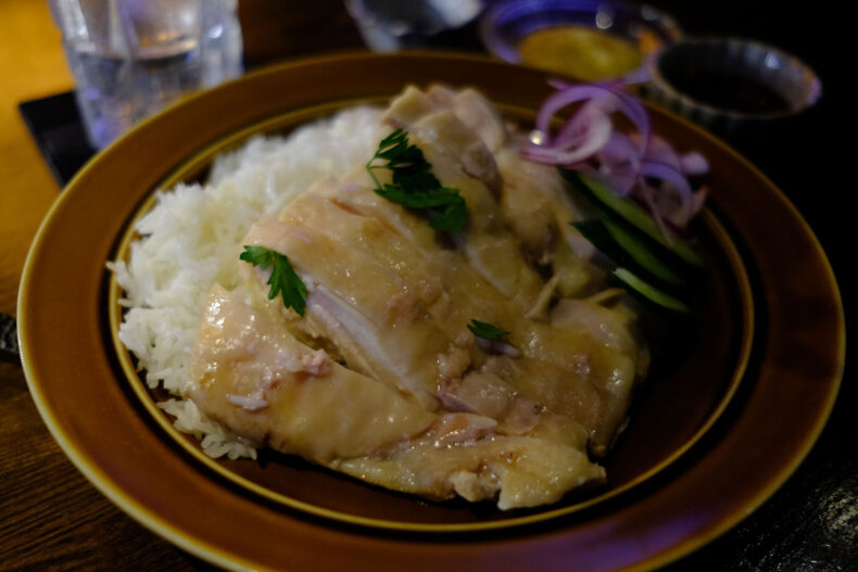 BAR IGETA は少人数で営業しているのでいつも悪いなぁ…と思いながらも毎回ガンダムクラスタのお約束として「まずはうまい水をくれ」から始まって「できるものを14人分ね」(イメージ)的な頼み方をしてしまうのですが、いやまさかニヤァンが言及していたカオマンガイが待ってるとは思わないじゃないですか! しかもちゃんとトマトが乗っていないという、タイ人もニッコリ仕様。口がカオマンガイになっていなかったので新鮮な驚き、美味しかったです。