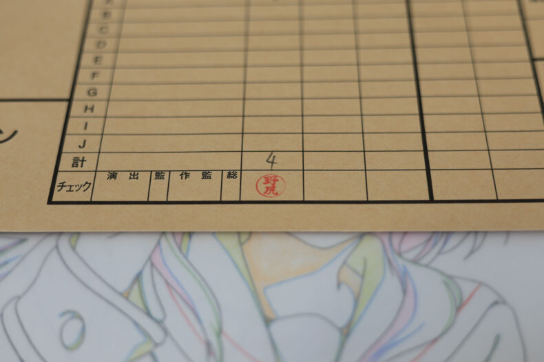 野尻さんの認印…「響け!ユーフォニアム」のスタッフロール「原画」のところに名前が出る、野尻壮さんでしょうか。まぁそうでしょうね。