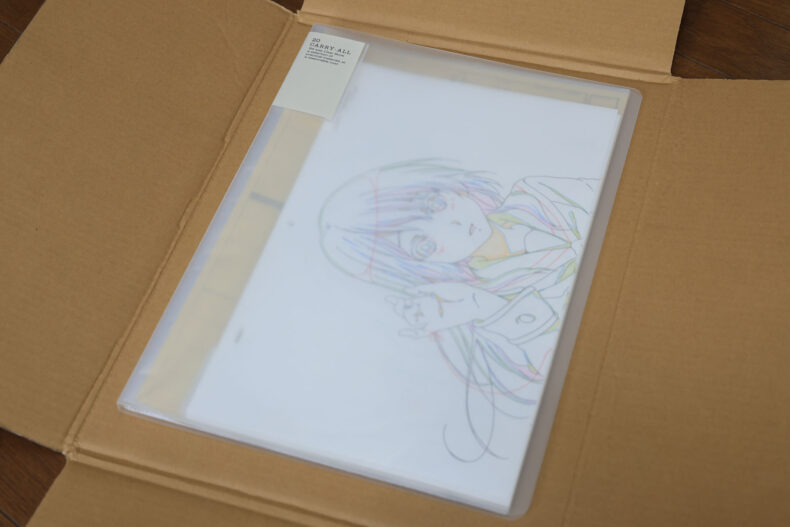 自分が持っているものでは「まどマギ劇場版」以来の原画、しかもまどマギは複製でしたがこれは消しゴムで消える手書き、ということで開封後の取り扱いは緊張しました。