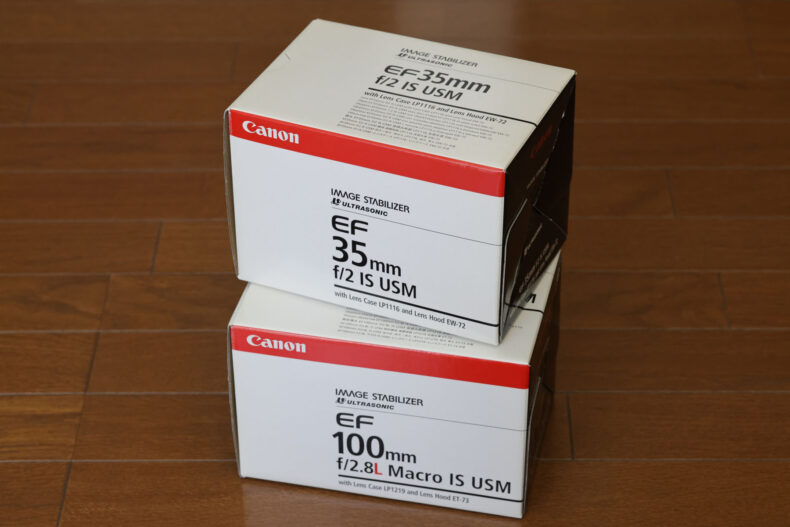 RFではなくEFレンズの箱は、緩衝材が発泡スチロールなのでなかなか捨てにくく、マトリョーシカにできません。そういえばこの 35mm F2 の箱は元 @co1 さんのでした。8~9年前くらいに譲ってもらったっけ。この箱を見て思い出したんですが、1990年代ごろ、このEFレンズの白い箱って、赤い帯の部分が斜めにカットされてましたよね? あれ凝ってて好きだったなぁ。なんか特別なものを買った感じもあったし。