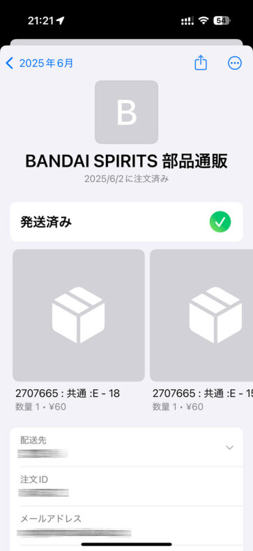 やったことといえば、最終日の夕方になってバンダイから届いていたプラモデルのパーツを開封。そういえばバンダイの部品通販って Apple Pay での決済ができるんですけど、すると Apple Pay 側にどんな部品を購入したかの情報が伝わるんですね。こわ(;´Д`) 過剰じゃないですかこれ…。