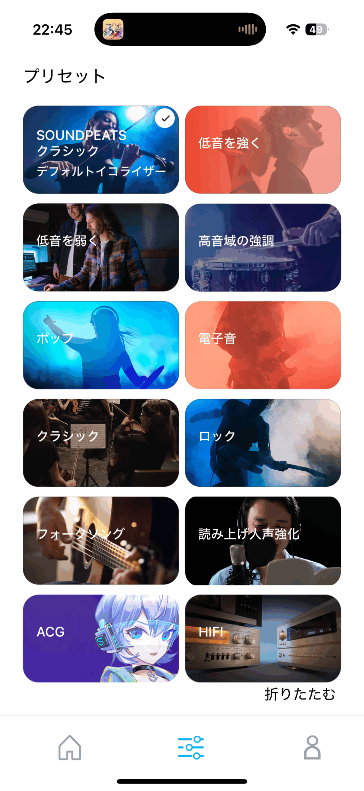 ここに用意された様々なイコライジングで試聴してみると、平均的には分厚いサウンドだなと感じました。繊細さより押しの強さ。ボーカルが強く、明瞭です。料理で例えるならアメリカンな1ポンドステーキみたいな音、とでも言いましょうか。AirPods などと同じで、これだけ聴いている分には不満はありません。