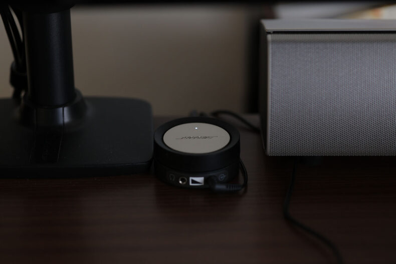 家族はこの在宅勤務用 BOSE には触らないので、コントロールポッド天面の銀色のところに触れると電源が切れることを知りません。今回はたまたま私が家にいたので対処できましたが、私がいなくて他の家族だけのとき露頭に迷わないように、コントロールポッドの天面の機能については説明しておこうかと思いました。