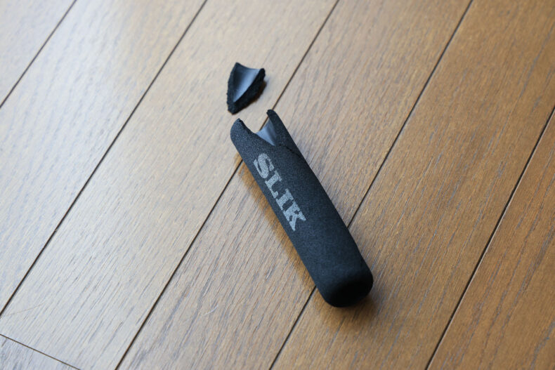 そんな訳でグリップ外したいなぁ…と、めくって接着の様子を観察していたら、ビリッと破けてしまいました。