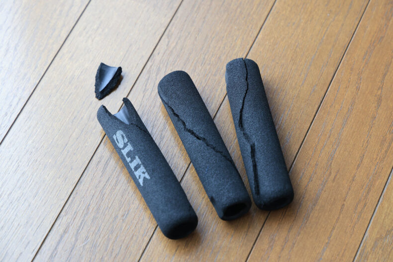 グリップを留めていた粘着テープをアルコールで擦って落としたら、一部塗装が剥げてしまいました。なにそれ。