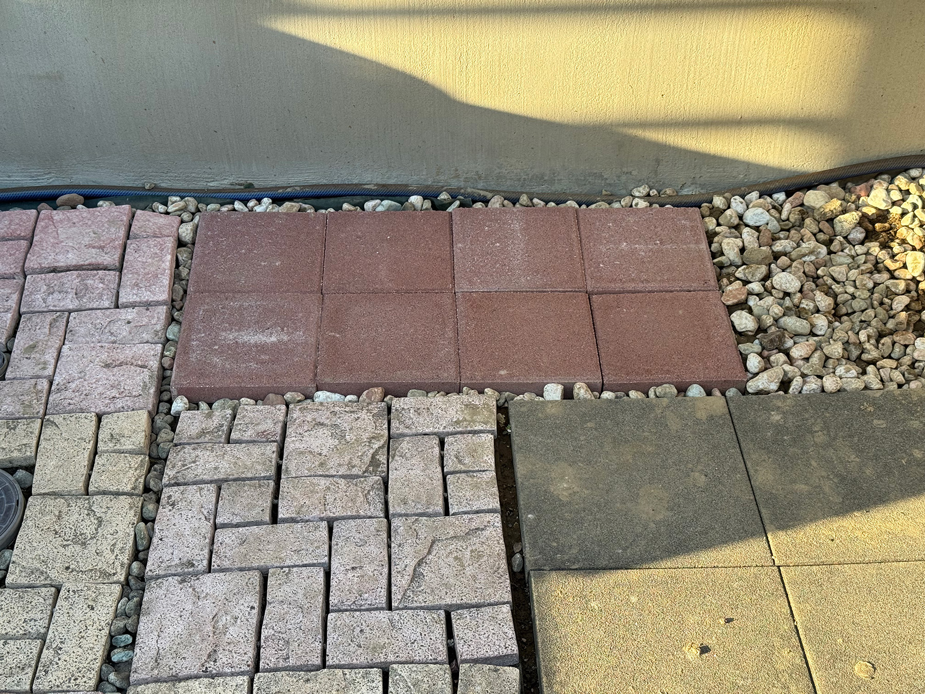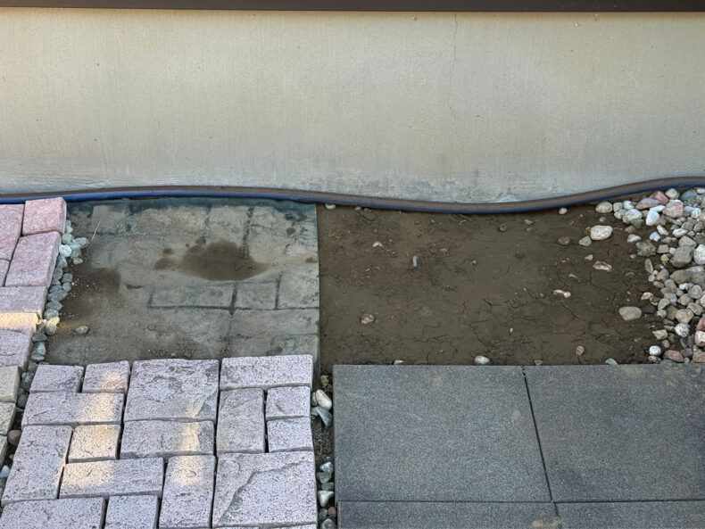 娘の部屋のエアコン取り付けまで1週間となりましたが、室外機置き場がいまひとつシャキッとしません。以下の画像が設置予定地で 80x40cm あるのですが、もともとその 80 x 40cmのうち左半分は防草シート+石畳的なもの、右半分は土+砂利でした。地面も平坦とは言い難く、微妙にうねっているように見えます。敷いてあるものに統一感がないのは、前のオーナーさんの残置物を一部そのまま流用しているからです。