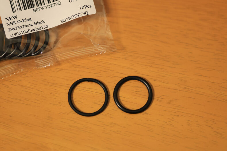 まぁちょっときつくて太いですけど、用は足りました。このOリングがあると脚を閉じた時のクッションになるんですよね。