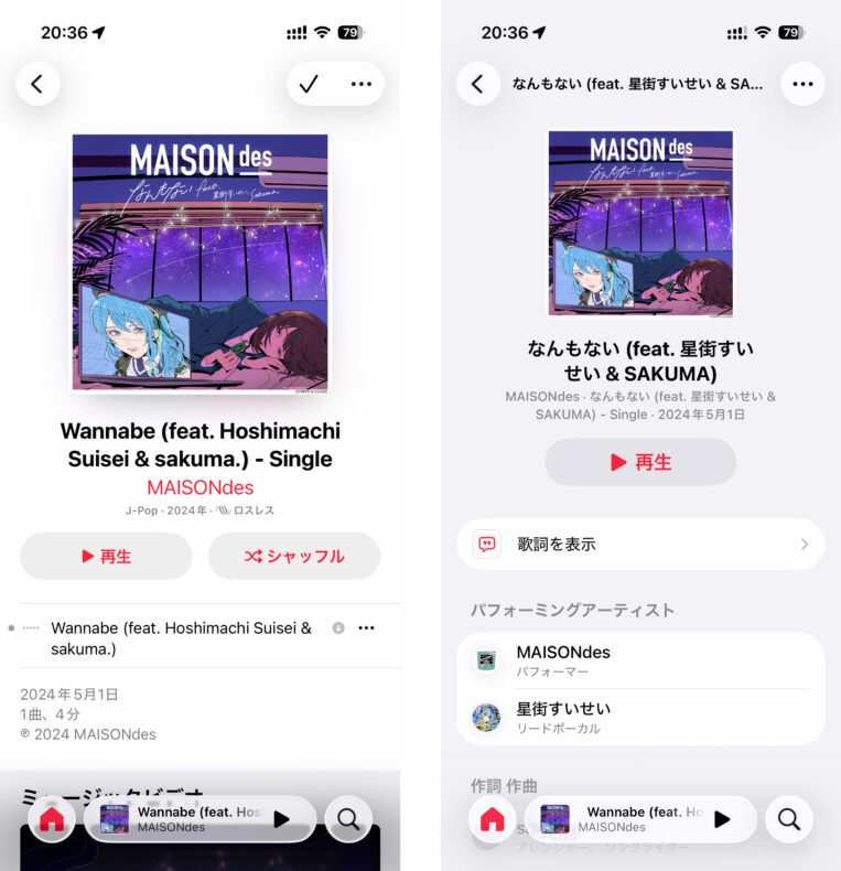 なお ChatGPTさんに解決法を尋ねたところ、「英語に化けた曲を手入力で日本語に直すとiCloud側での楽曲認識が働かなくなるので解決する」とのことで、数曲で試したところ確かに解決しました。具体的には Mac で日本語に手直しした楽曲が瞬時に iPhone に反映され、元に戻ることはありませんでした。この現象は「過去にiTunesで購入した曲の一部でだけ発生する」ということはわかってるんですが、それでも100曲以上は手入力するようなんだよなぁ…。