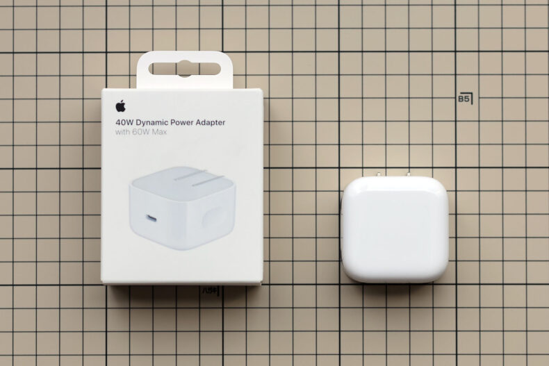 本日発売の Apple 40W ダイナミックパワーアダプターを買いました。瞬間的に60W出せるけど、定格は40Wというアダプタです。