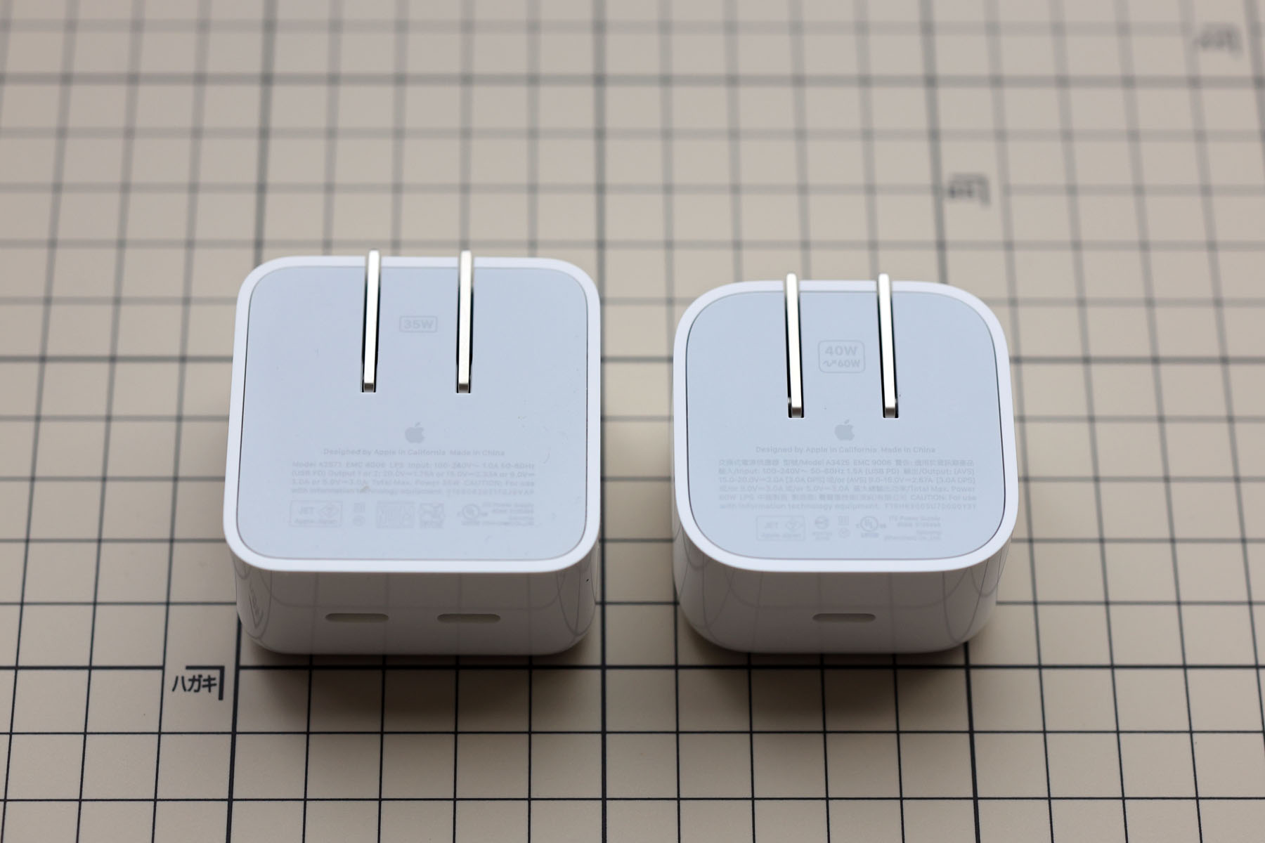 余談ですが、35Wの方のアダプタの重量は正確には105.00gでした。Appleの充電器って1/100gまで管理されてるのでしょうか…?