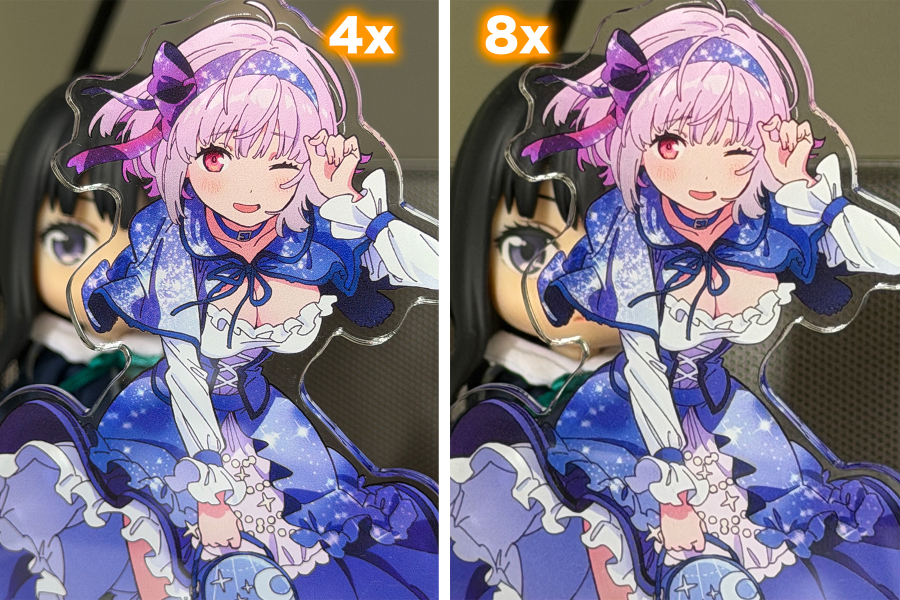 4xの方は同じ大きさになるように近づいて撮っていますが、意外にも 4x の方が後ろがボケてるのが面白い。やっぱり 8xの方はクロップらしい画像ですね。