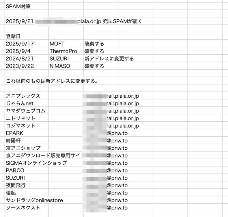 すでに4時間ほどかけてメールアドレスの変更は済んでおり、あとはSPAMの届いたメールアドレスを破棄するだけです。折角なんでもう1通くらいSPAM受信したら破棄しようかな。あるいはSPAM サンプル収集用に残しておくのも手か…?(笑
